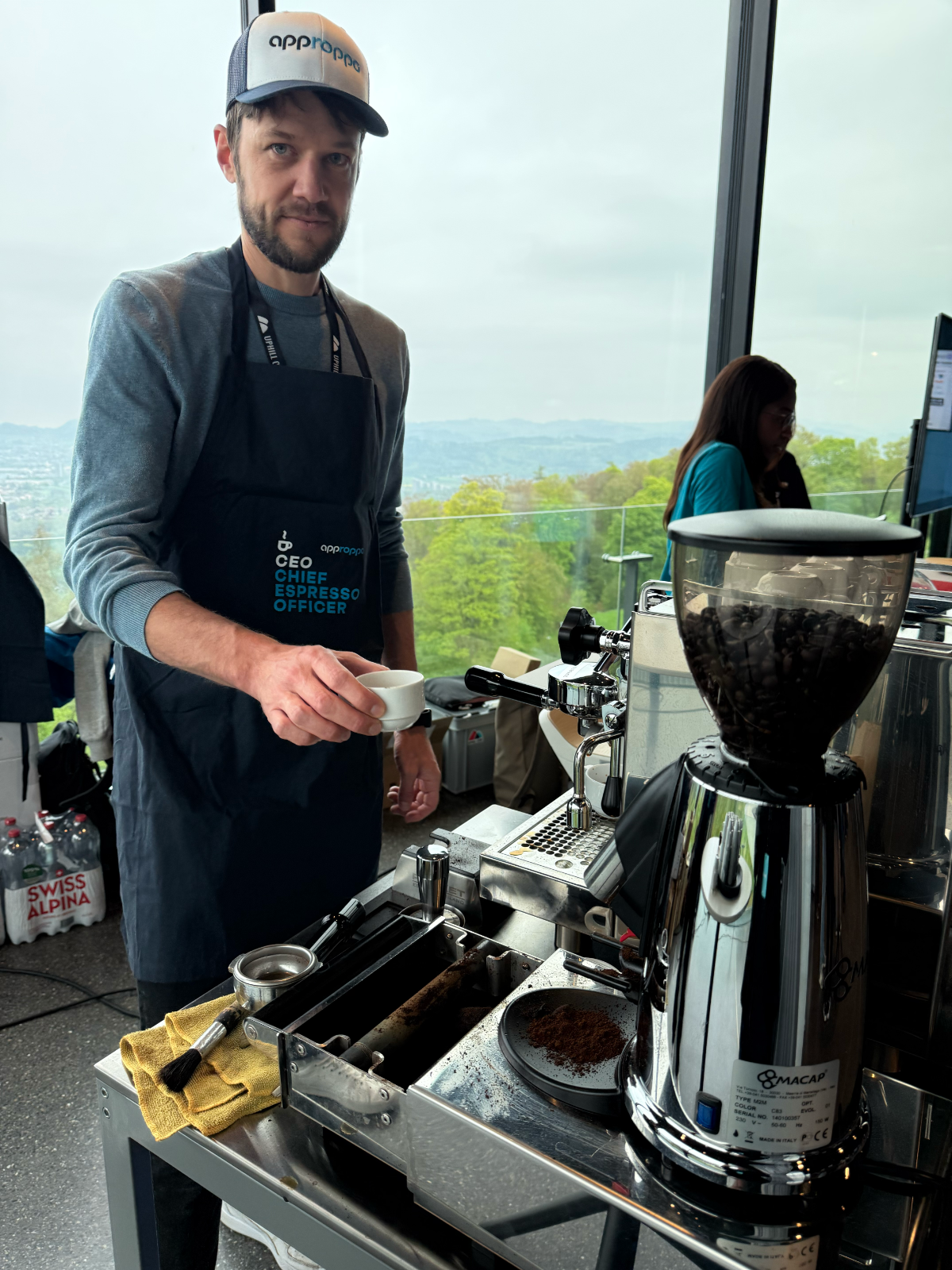 Schon beim ersten Morgengrauen lag der Duft von frischem Kaffee in der Luft – kein Wunder, schliesslich waren wir mit unserer Espressomaschine am Start, um die Konferenz-Teilnehmer mit feinem Koffein zu versorgen. Als Coffee Break Sponsor haben wir genau das geliefert, was zwischen Deep-Dives in KI-Themen dringend gebraucht wurde: Energie in flüssiger Form. 🚀