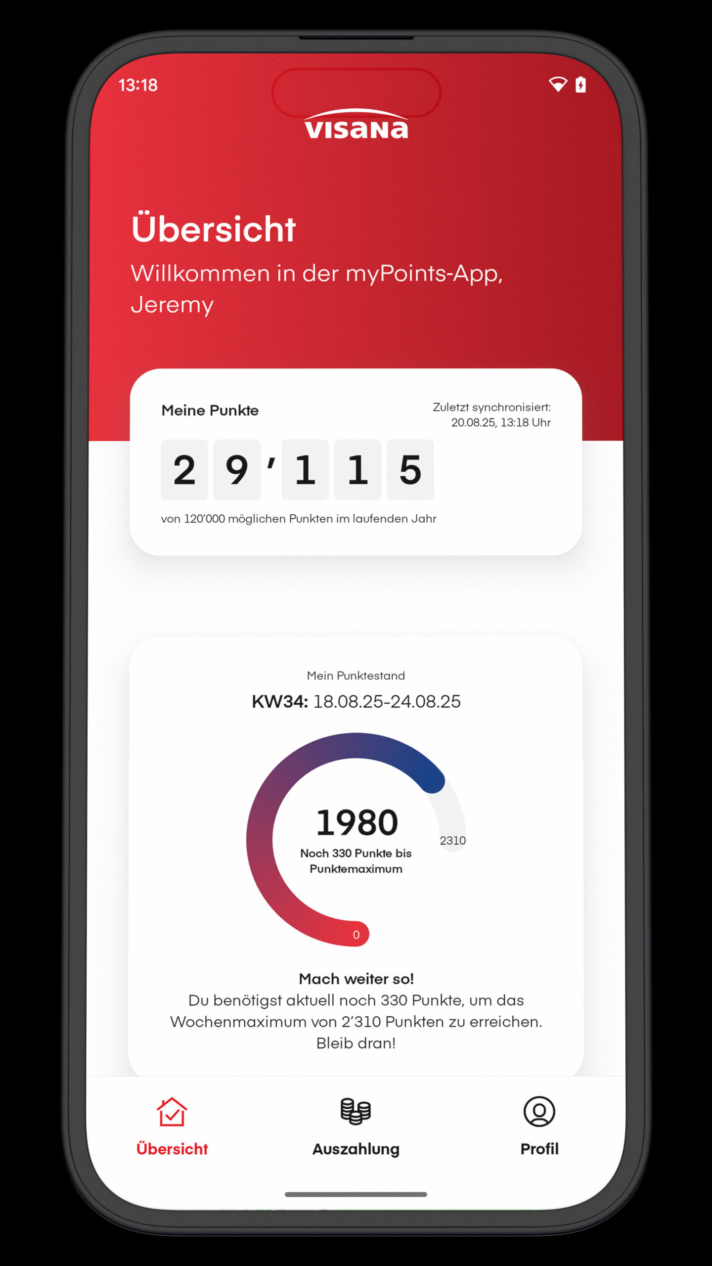 Bewegung lohnt sich – auch digital. Für Visana durften wir mit myPoints ein Bonusprogramm entwickeln, das nicht nur Schritte zählt, sondern auch Motivation. Ob beim Pendeln, Powerwalk oder Padel-Tennis: Wer sich bewegt, wird belohnt. Und das ganz ohne mühsames Eingeben – die App holt sich die Daten direkt aus Apple Health, Google Fit oder deiner Smartwatch.