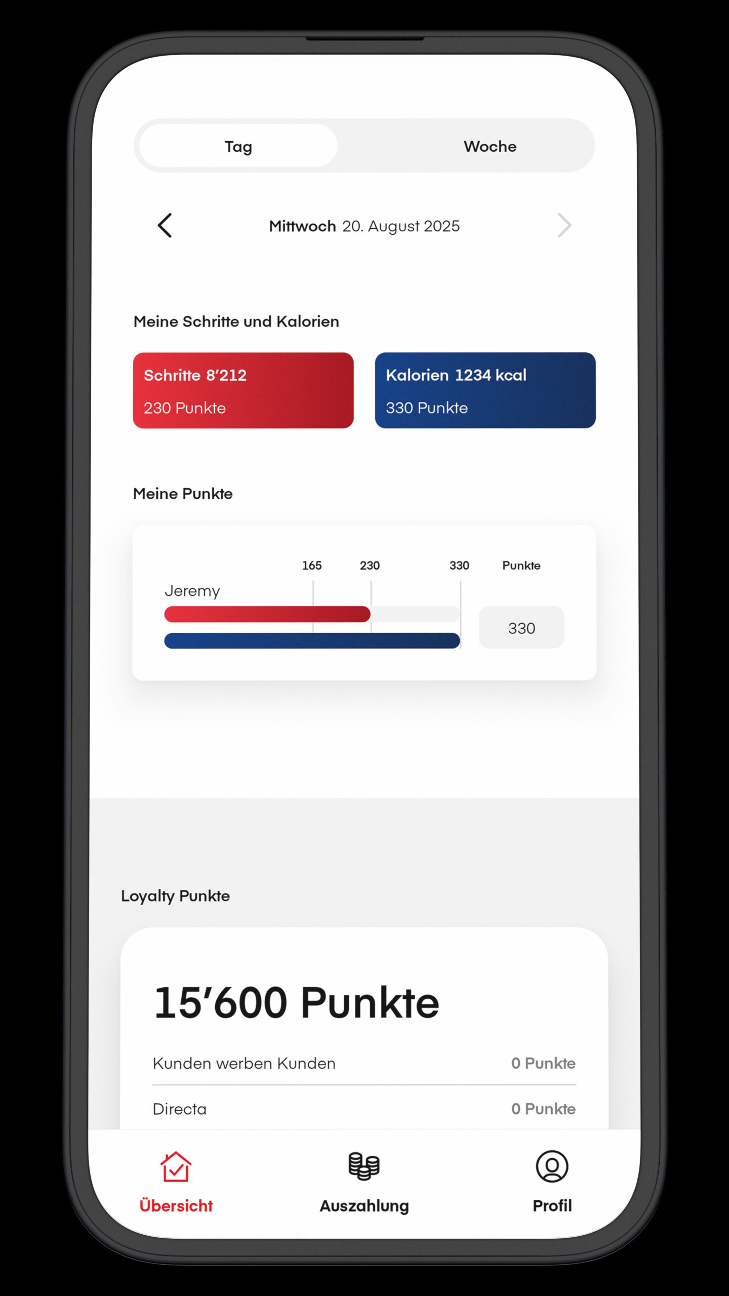 Doch myPoints kann mehr als nur Schritte zählen: Punkte gibt’s auch fürs Weiterempfehlen, fürs Einrichten von LSV/eBill und für andere smarte Loyalitäts-Features. So wird aus Alltagsbewegung ein echtes Plus für dich – und für dein Punktekonto.